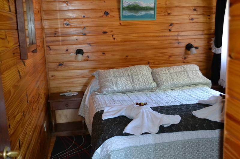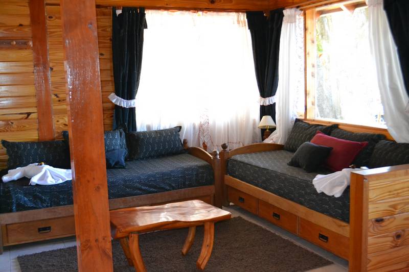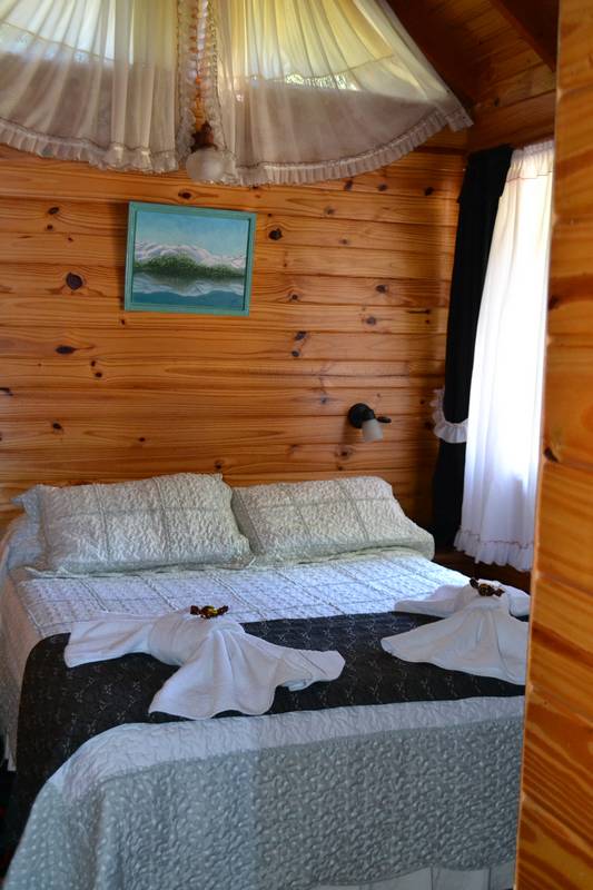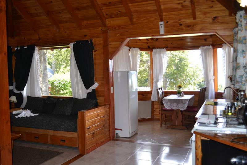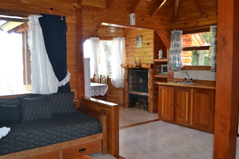Esta cabaña está construida toda en un solo nivel. Posee cocina comedor, dormitorio matrimonial y living con dos camas individuales. Cuenta con estacionamiento privado (el vehículo queda en la puerta de la cabaña), parrilla y juego de jardín individual. El sistema de calefacción es por Tiro Balanceado, y el sistema de agua caliente es por Termo Tanque. La superficie total aproximada es de 35 metros cuadrados.