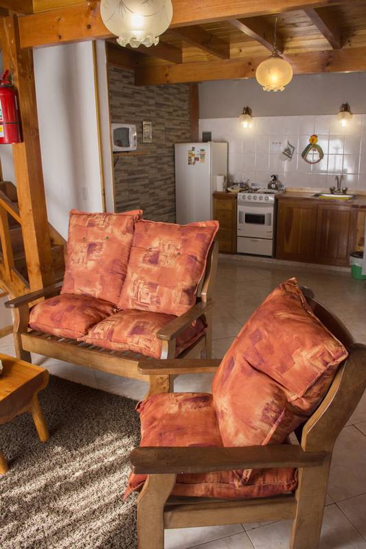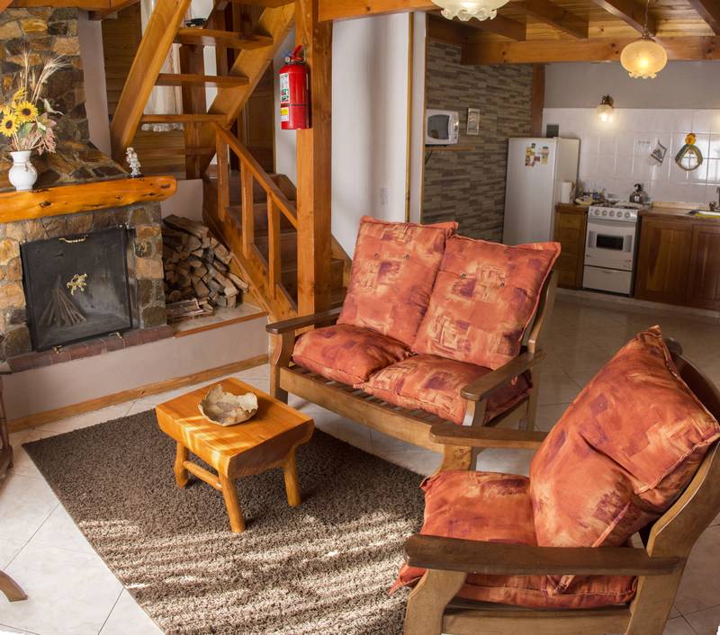 La misma está construida en tres niveles. En el primer nivel se ubica el living con hogar a leña y la cocina comedor. En el segundo nivel se encuentra el dormitorio matrimonial y el amplio baño, y en el tercer nivel se ubica el segundo dormitorio con 3 camas.