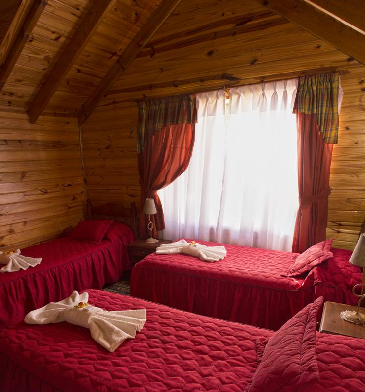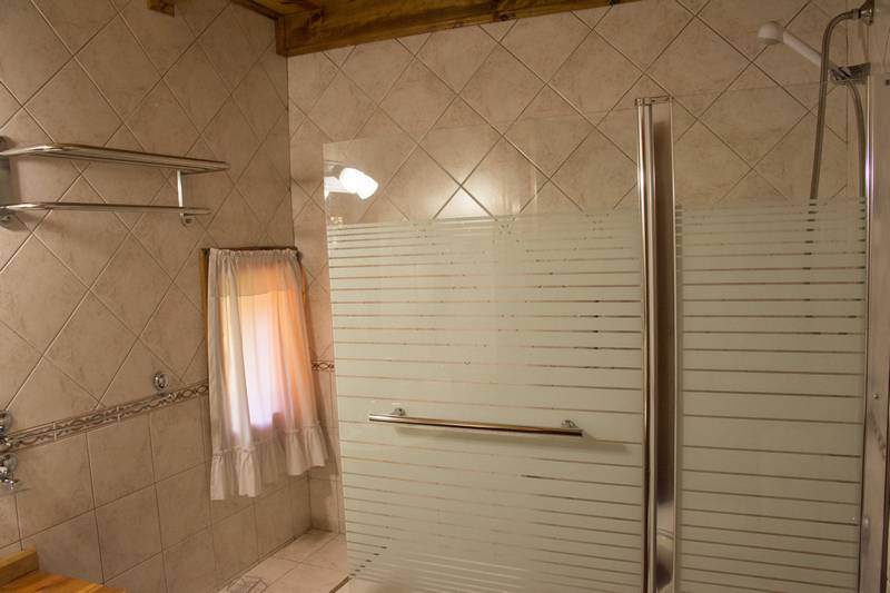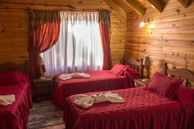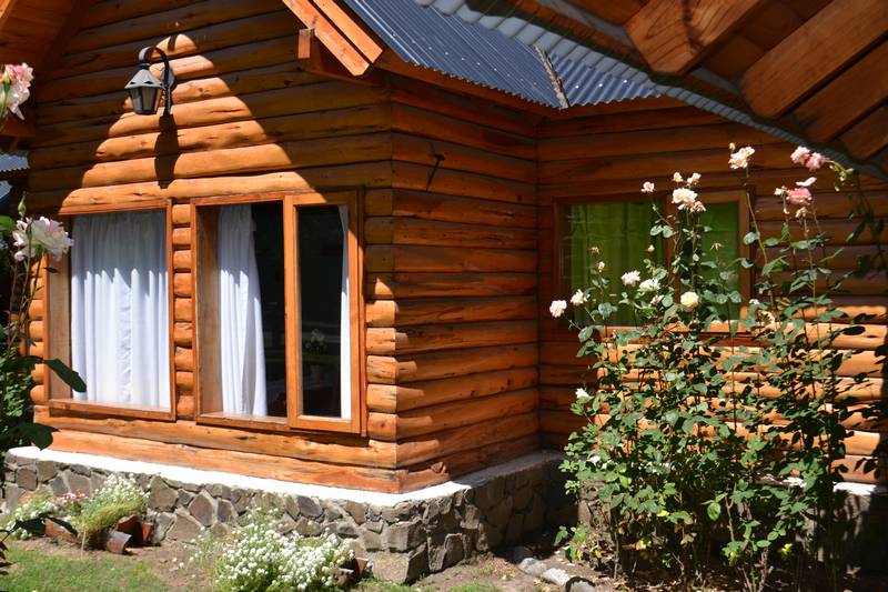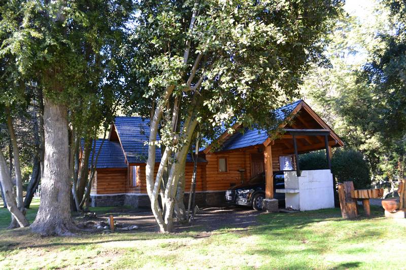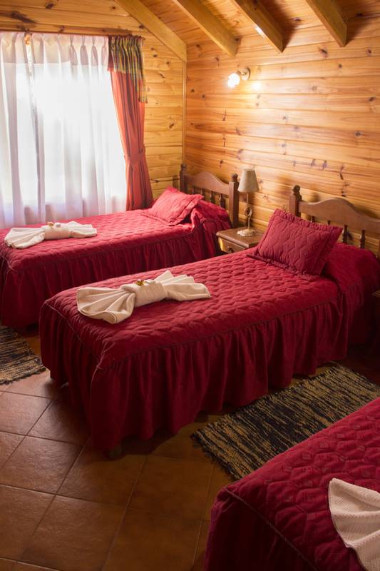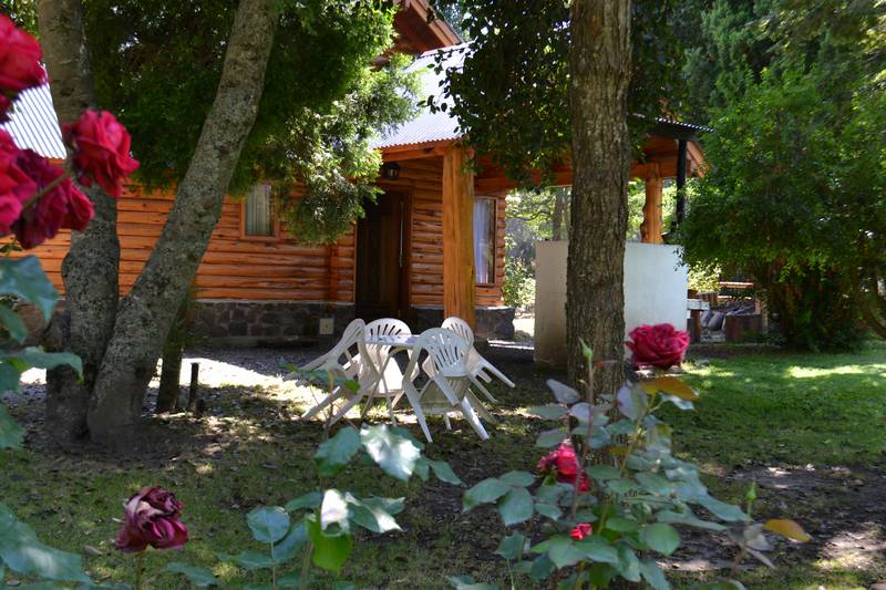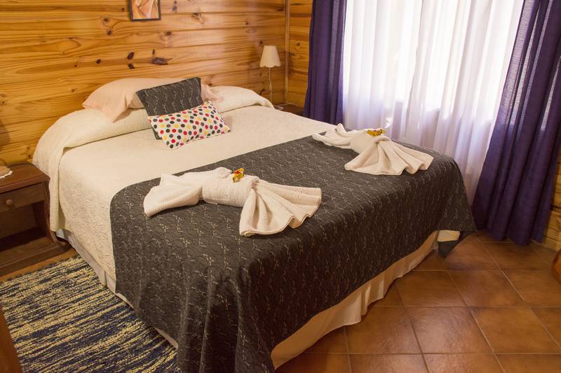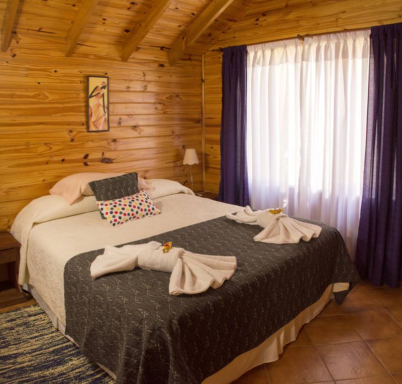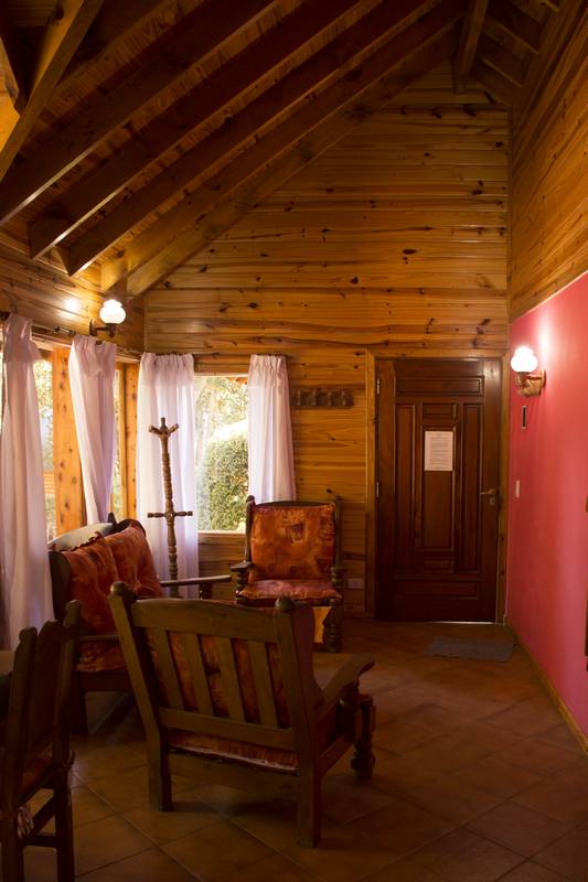 Esta está realizada en una planta. Tiene un amplio living, con dos sillones individuales, y otro de dos cuerpos, de madera de algarrobo. Una amplia cocina, con desayunador, y la mesa bien amplia y cómoda. El hogar a leña, y una televisión de 29".